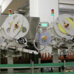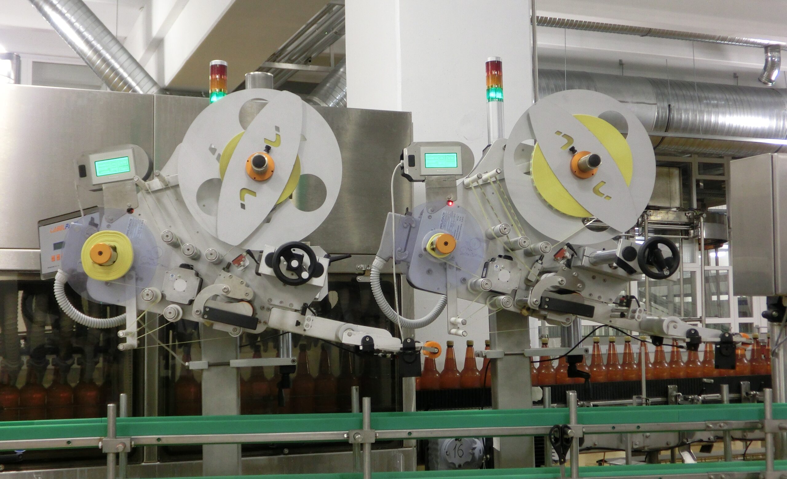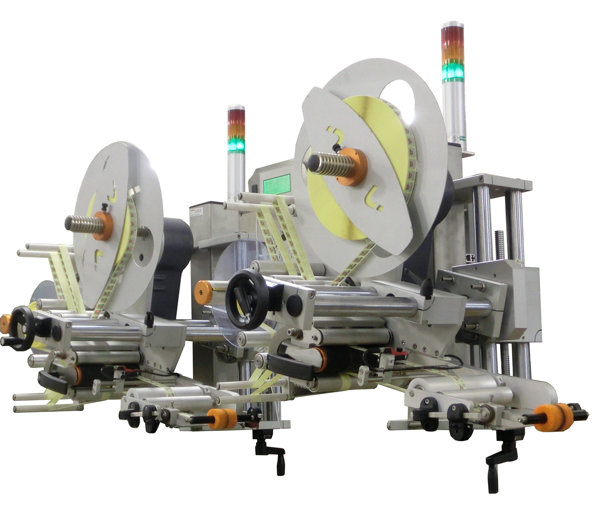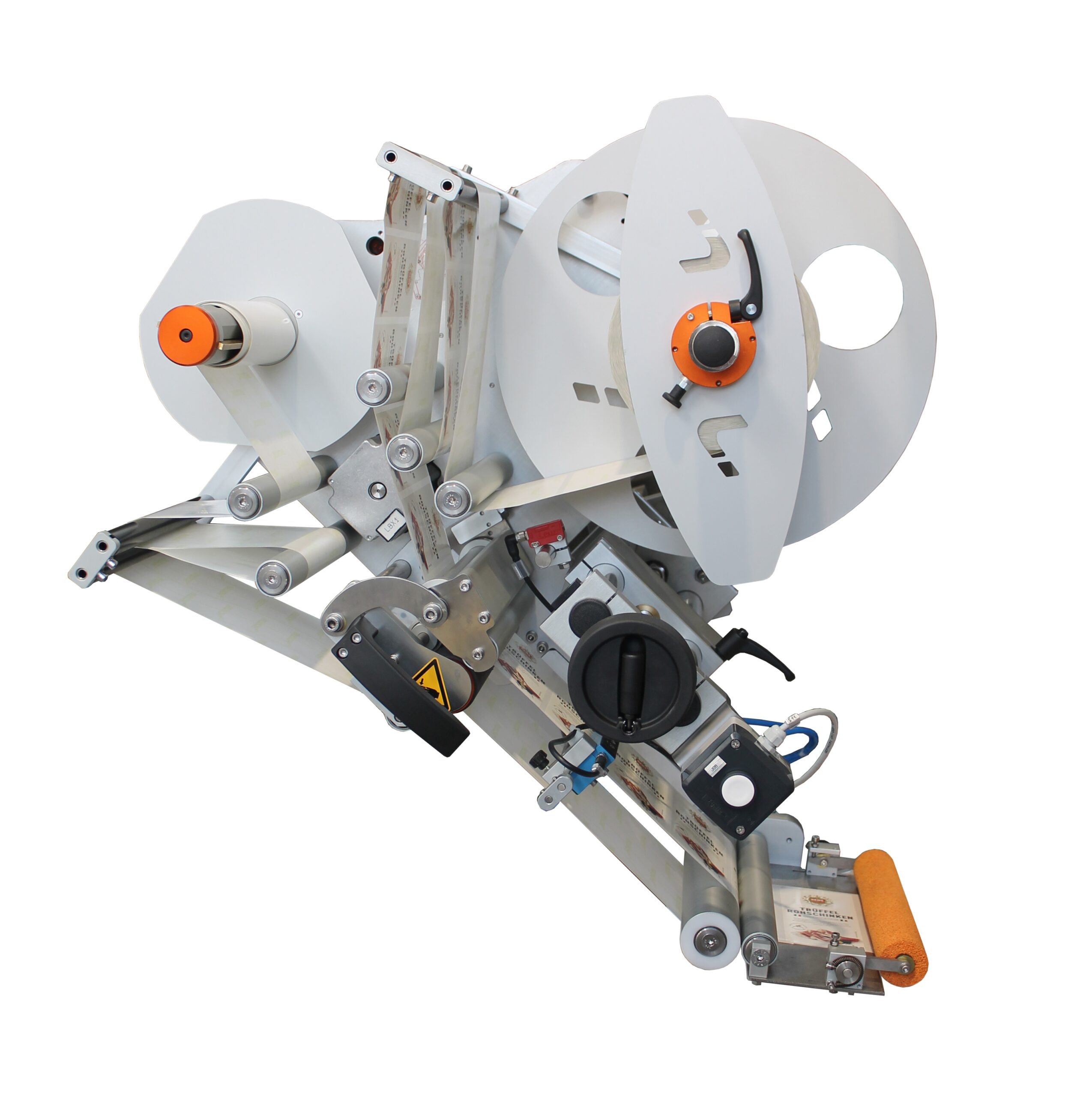 Etichettatrice automatica con riavvolgitore motorizzato adatta alle applicazione ad alta velocità.