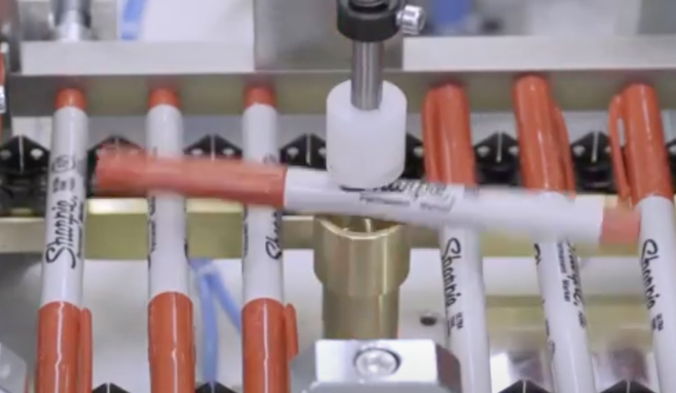 Sistema automatico per la stampa e applicazione di etichette autoadesive su penne e altri prodotti cilindrici di piccolo diametro. Questa soluzione è nata dalla collaborazione tra Labelpack e GPE Ardenghi per meglio affrontare le richieste di etichettatura e codifica su penne da scrittura e prodotti cosmetici come contenitori per mascara, lip-glos e rossetti.