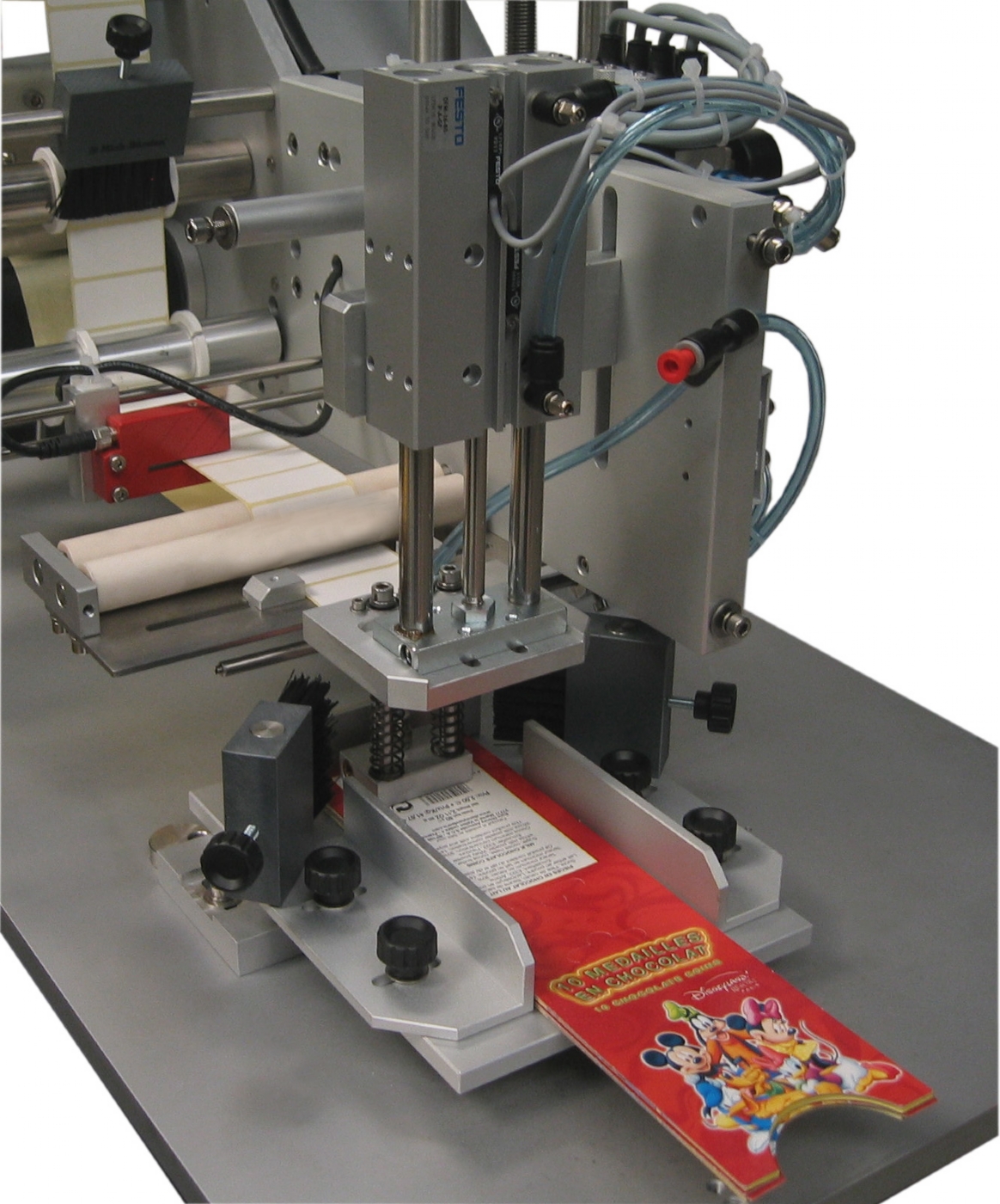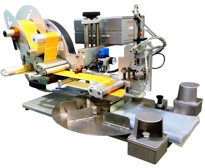 Etichettatrice semiautomatica per applicazione su prodotti piani.