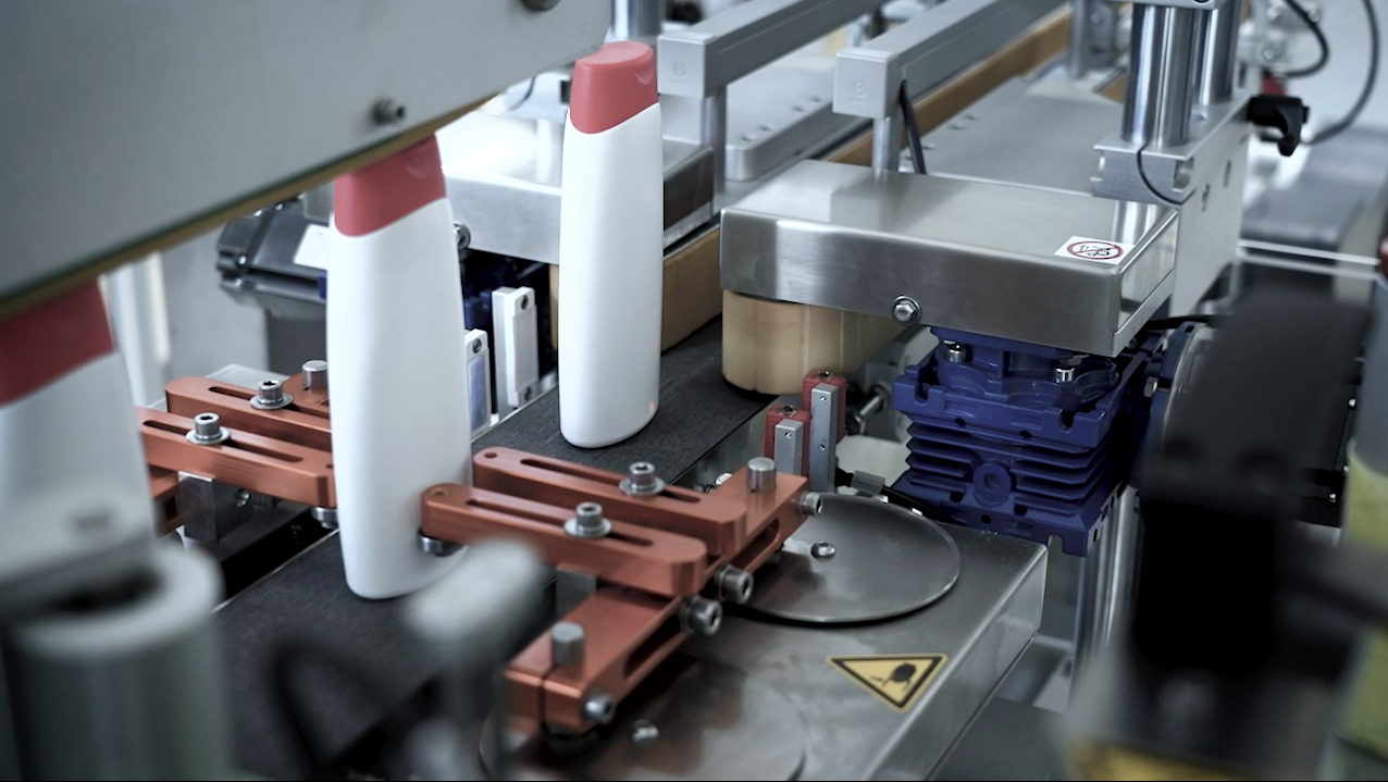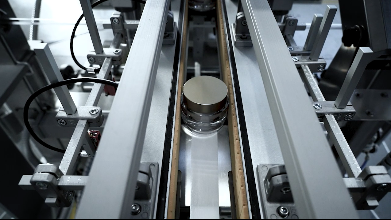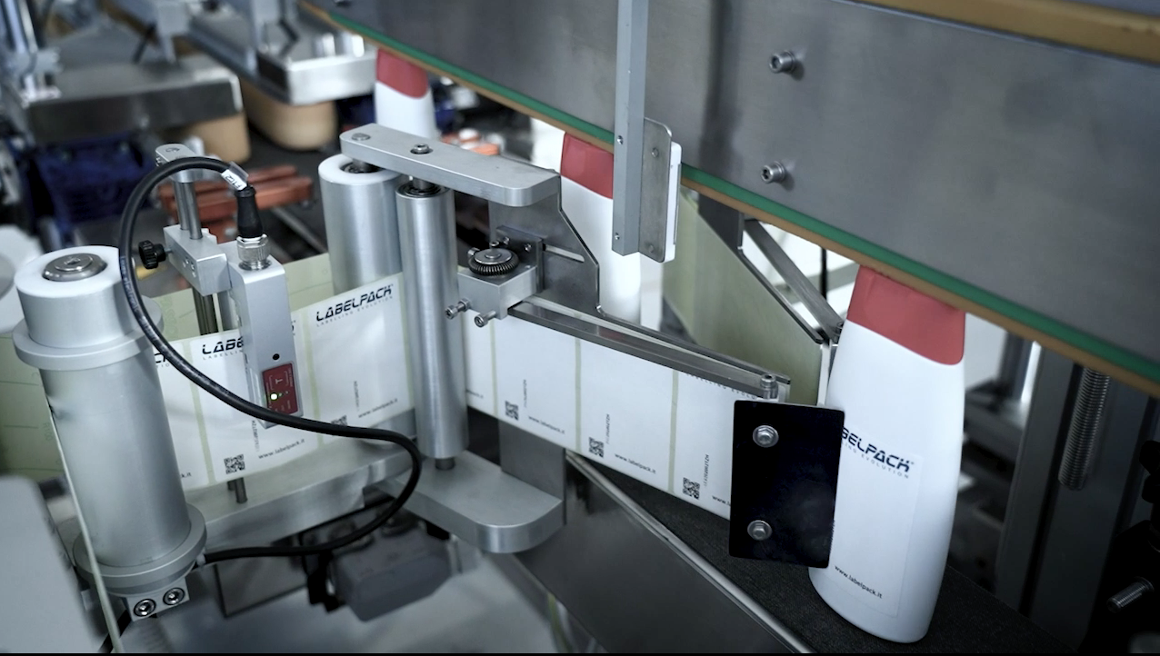 Il sistema è dotato di una prima stazione per l'applicazione di una etichetta sul fondo di vasetti per creme con stampa a trasferimento termico del numero del lotto di produzione e altri dati variabili. Successivamente un dispositivo allineatore orbitale garantisce un corretto allineamento di flaconi a base ellittica. Due unità etichettatrici LABELX provvedono alla applicazione di etichette fronte e retro su flaconi a base quadrangolare o ellittica. Una di queste unità e fissata su di una slitta meccanica che ne consente lo spostamento verso il dispositivo di rotazione dinamico che permette l'applicazione di una etichetta avvolgente su falconi di forma cilindrica. Anche questa unità di etichettatura e dotata di un codificatore trasferimento termico per la stampa dei dati variabili. Il sistema è dotato di controlli di avvenuta applicazione etichette e di un espulsore automatico. Il controllo del sistema è affidato ad un PLC con pannello operatore touch screen dotato di accesso per gestione assistenza remota. Ind. 4.0 Ready