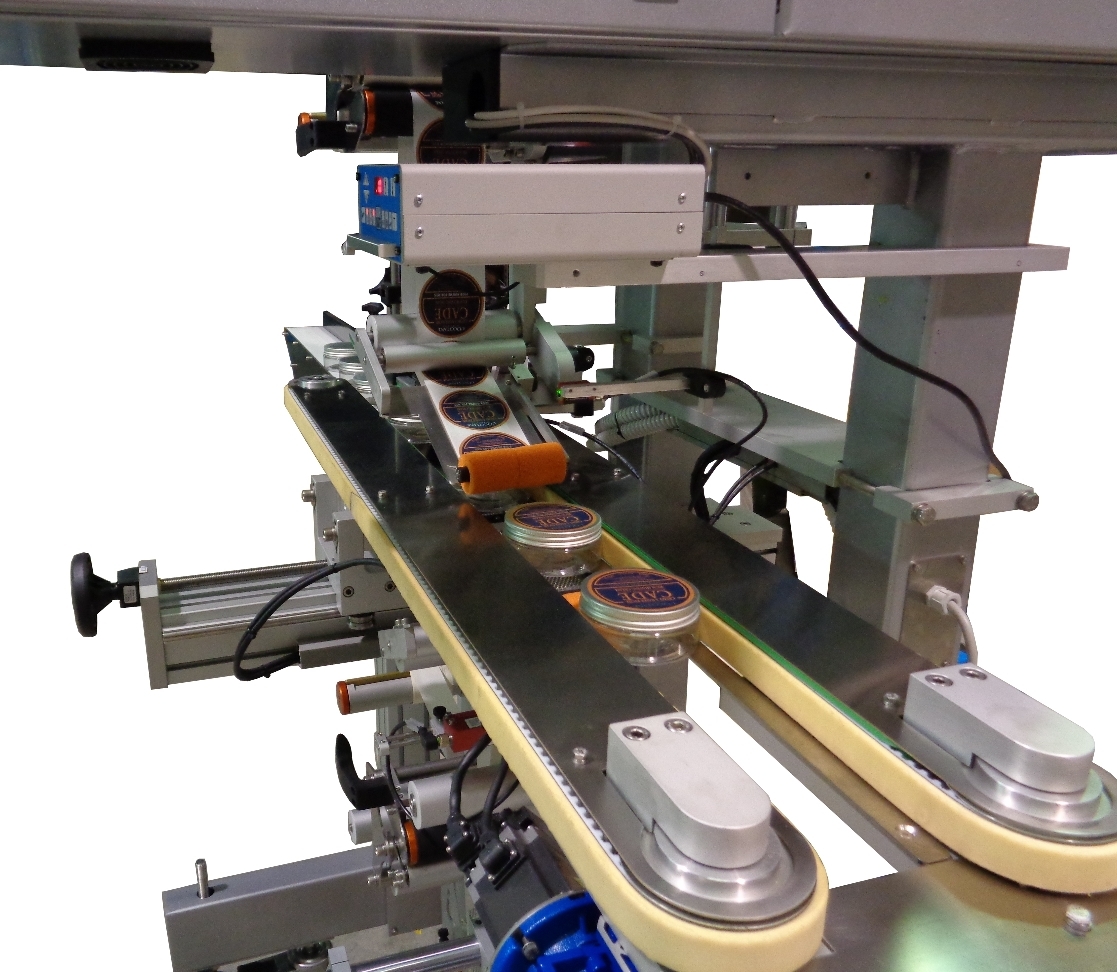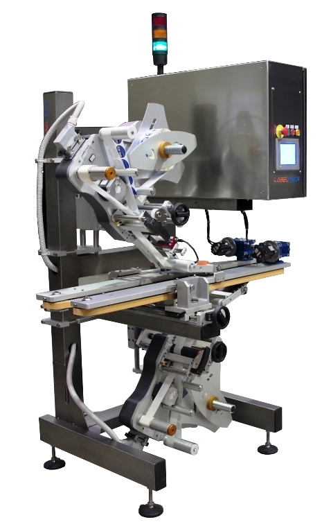 E' un sistema di etichettatura automatico in grado di applicare una etichetta sul fondo ed una sul lato superiore di vasetti in vetro o plastica ed altri contenitori di forma cilindrica o rettangolare. Particolarmente indicato per l'industria cosmetica e della profumeria nonchè per l'industria alimentare.