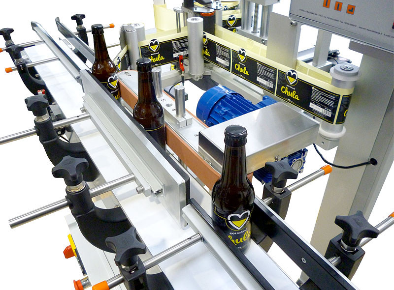 COMPACT WA è la soluzione ideale per l’applicazione di UN’ETICHETTA AVVOLGENTE SU DIFFERENTI FORMATI DI BOTTIGLIE di birra. L’etichetta può essere realizzata con carta autoadesiva stampata in vari colori oppure in materiale plastico, anche trasparente. COMPACT WA è dotato di UN NASTRO DI TRASPORTO che riceve le bottiglie direttamente dalla linea di riempimento, di UNA STAZIONE DI ETICHETTATURA equipaggiata con gruppo stampa a caldo per la stampa della data di scadenza e di UN DISPOSITIVO ROTOLATORE MOTORIZZATO che garantisce la perfetta adesione dell’etichetta sulla bottiglia.