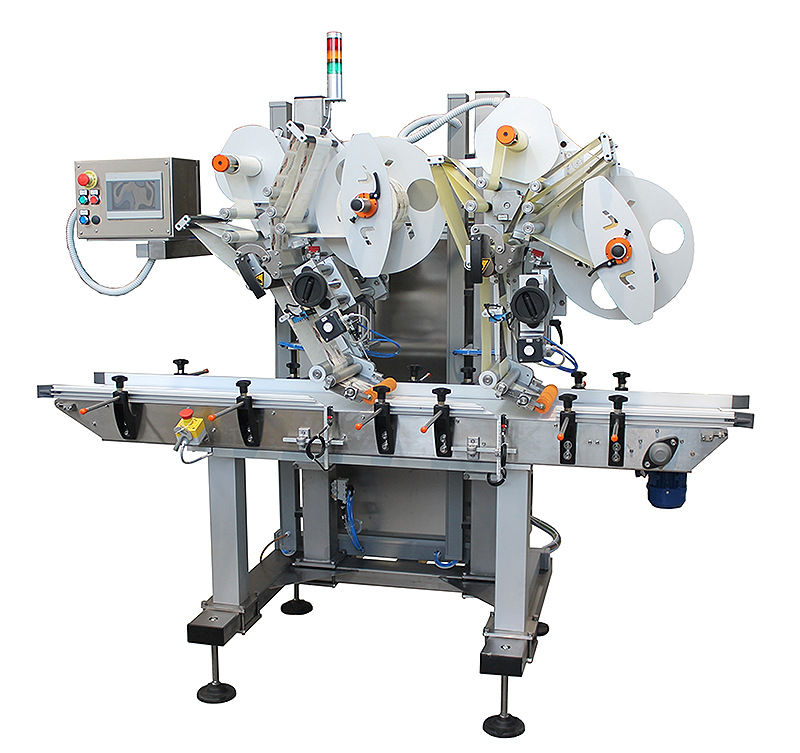 Le DUE ETICHETTATRICI INTEGRATE nella parte inferiore del sistema di trasporto sono gestite con la FUNZIONE NON-STOP che consente l’intervento per il cambio bobina di etichette senza dover fermare la linea di produzione e incorporano un SISTEMA DI CODIFICA THERMAL-JET per la stampa di dati variabili.